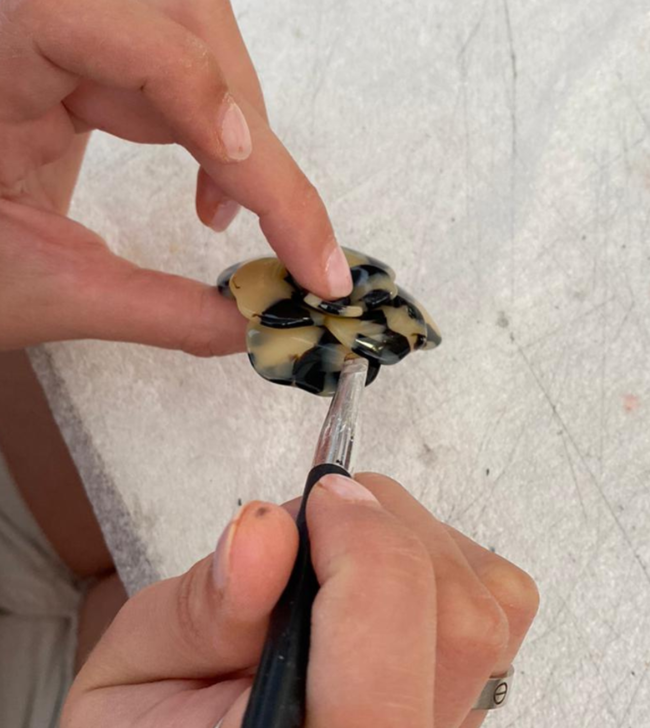 Sustainability is important to us, which is why all of our French Handmade hair accessories are made from an eco-resin cellulose acetate material which is biodegradable and plastic-free. Find out more about this material and its benefits here.