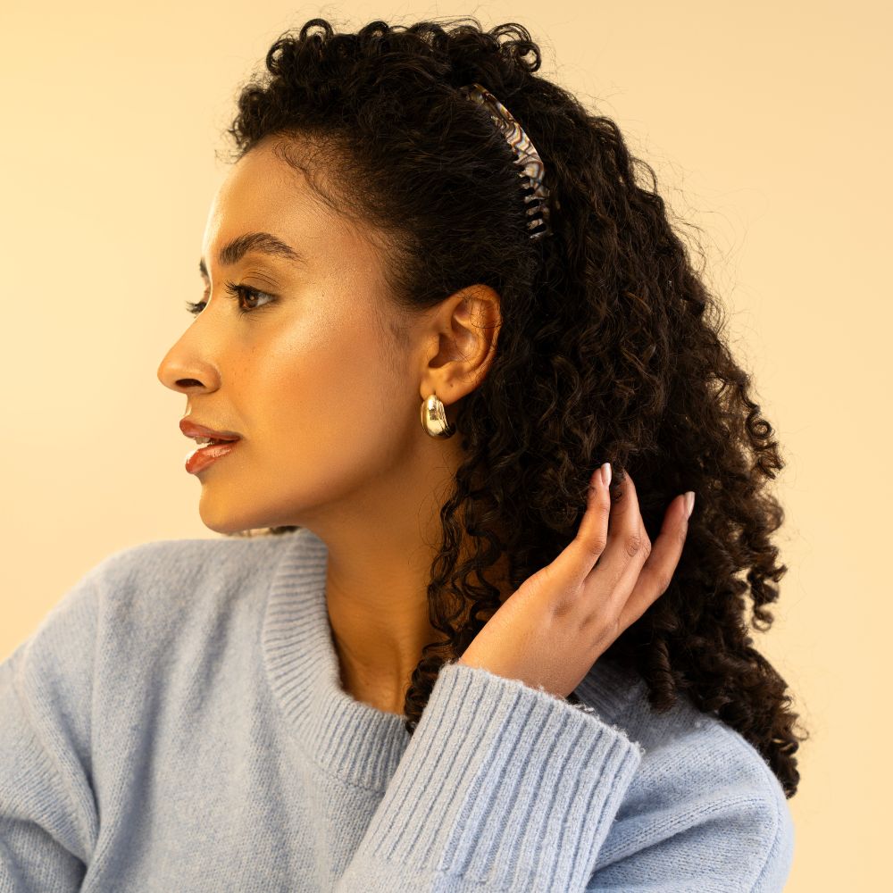 Nuestros accesorios hechos a mano en Francia están elaborados a partir de láminas de acetato de celulosa, que es un material biodegradable flexible y robusto elaborado a partir de compuestos naturales como el algodón y la pulpa de madera. Este es un proceso de producción altamente sustentable porque cada parte de esta lámina puede usarse en la creación de nuestros accesorios para el cabello más pequeños o fundirse para reutilizarse sin desperdicio alguno.